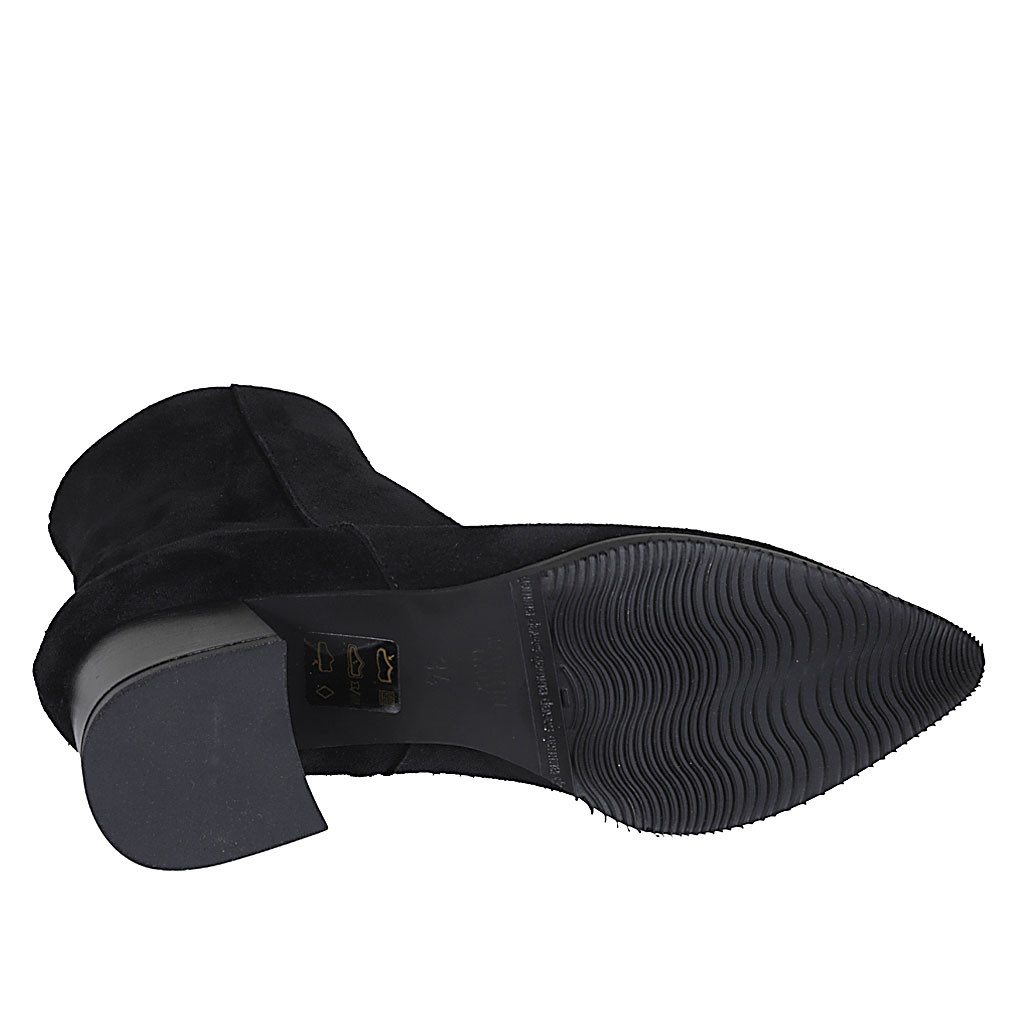 Bottines à bout pointu pour femmes avec fermeture éclair en daim noir talon 5 - Pointures disponibles:  34, 42, 44