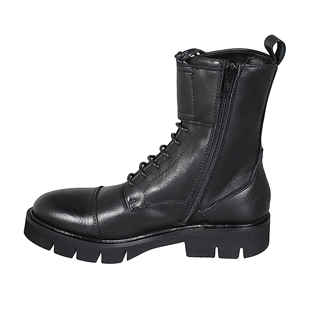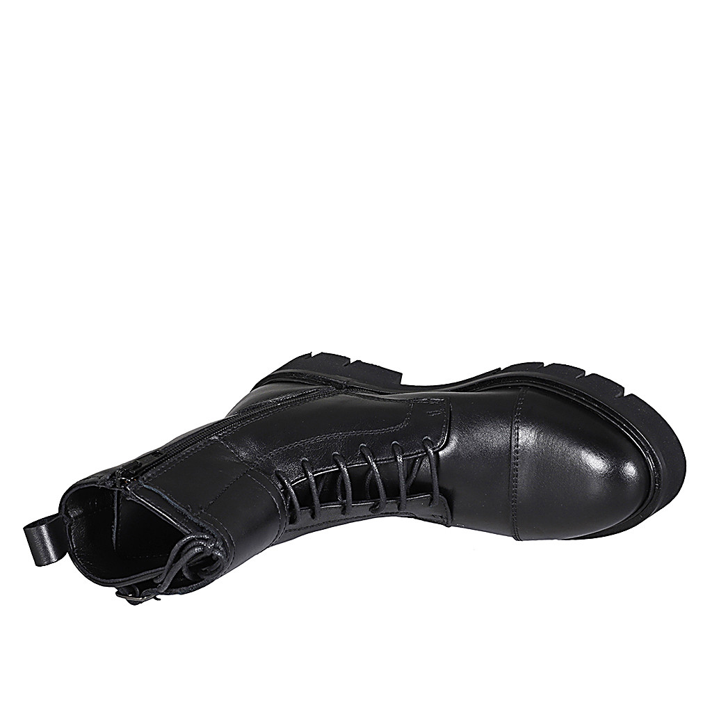 Bottines pour femmes stil combat avec lacets, bout droit, boucles et fermeture éclair en cuir noir avec talon 3 - Pointures disponibles:  34, 43, 44
