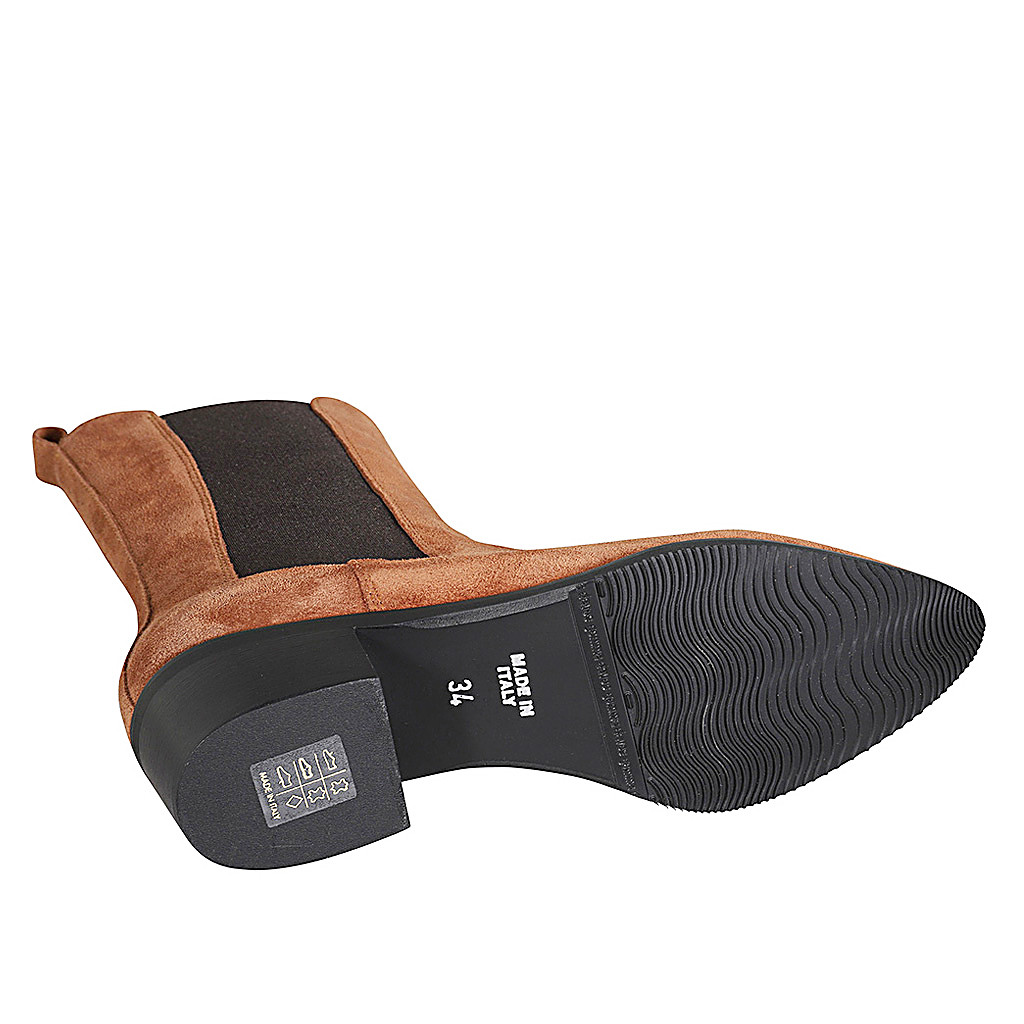 Bottines texanes hautes pour femmes en daim cognac avec élastiques talon 4 - Pointures disponibles:  32, 33, 34, 42, 43, 46, 47