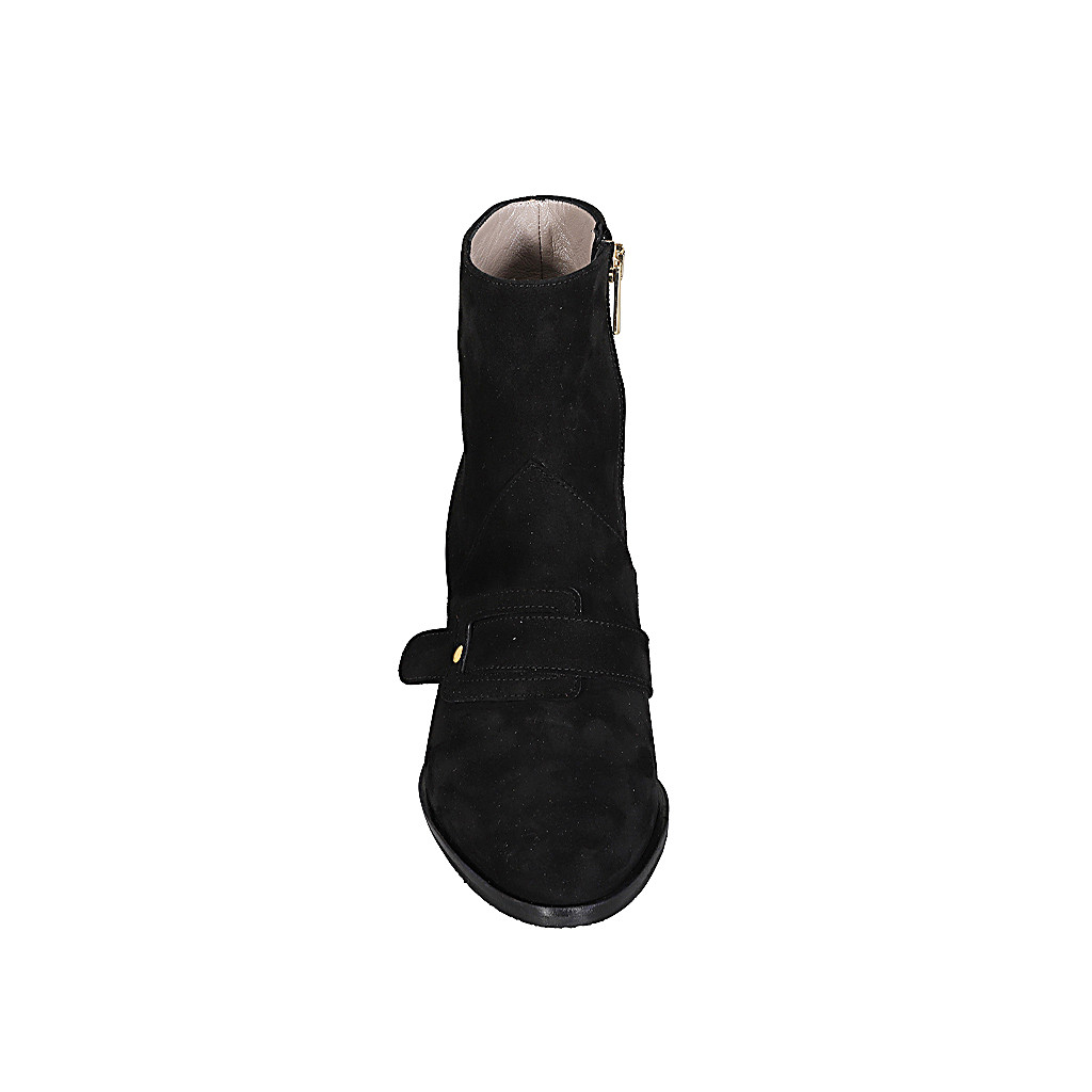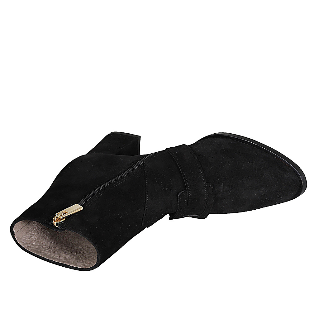 Bottines pour femmes avec fermeture éclair et accessoire en daim noir avec talon 7