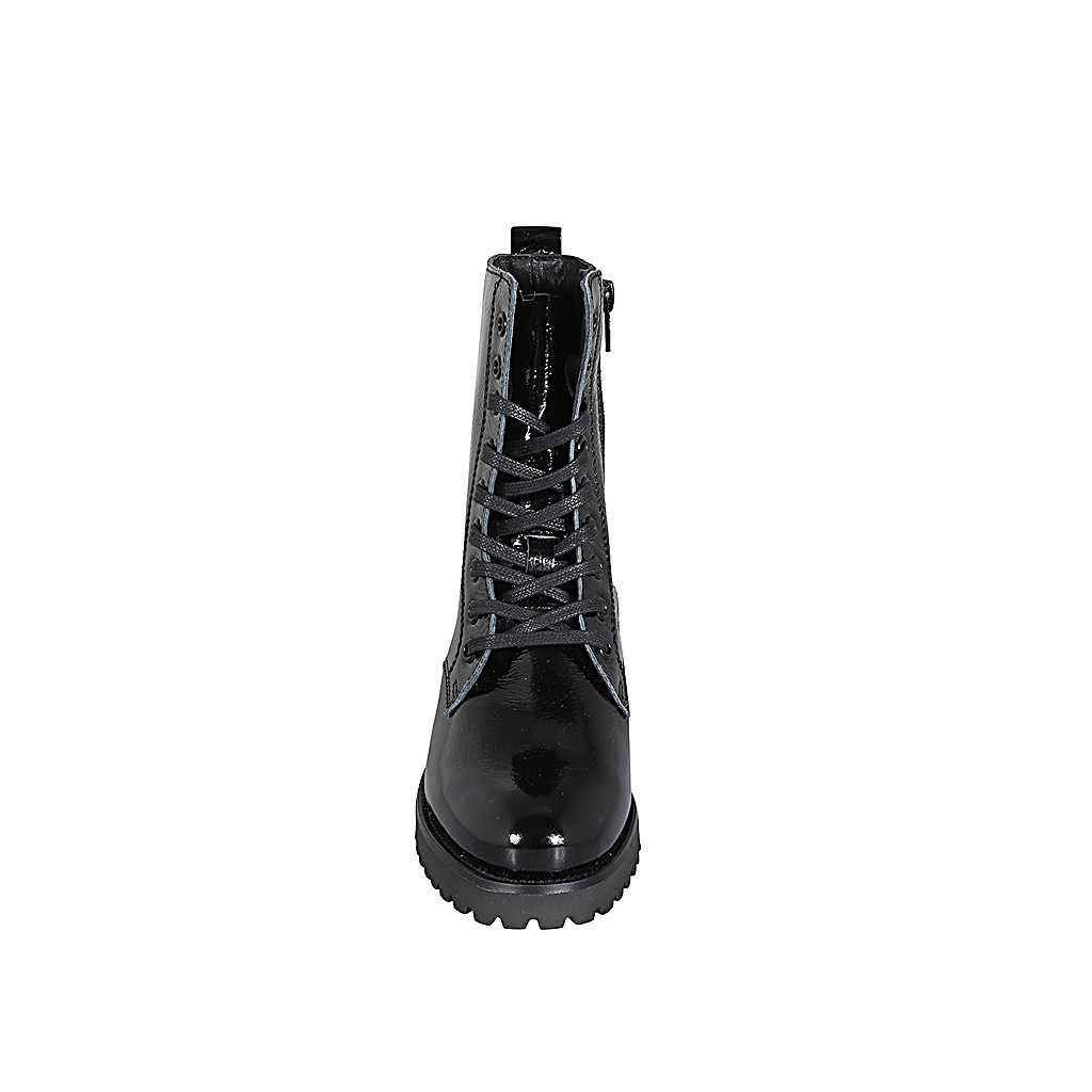 Bottines avec lacets et fermeture éclair pour femmes en cuir verni noir talon 3 - Pointures disponibles:  33