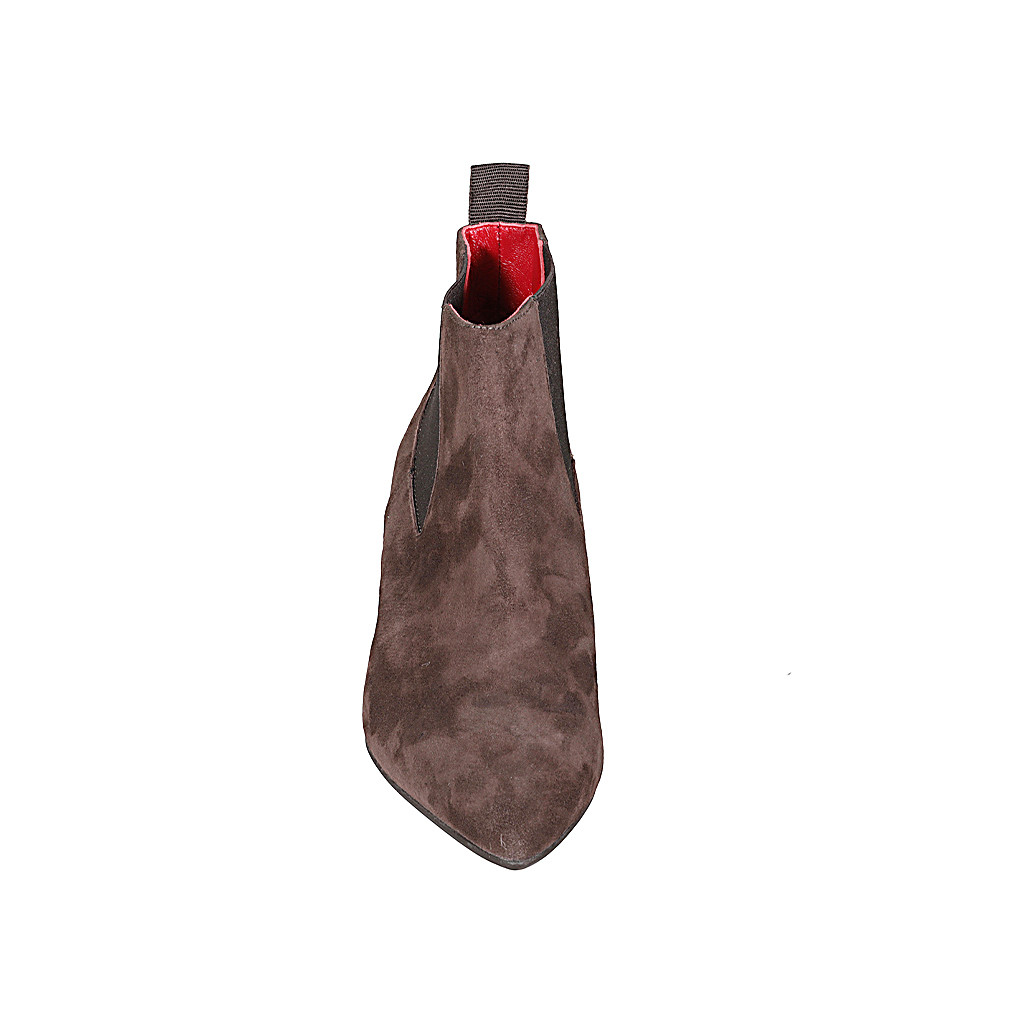 Bottines à bout pointu pour femmes avec élastiques en daim marron talon 6