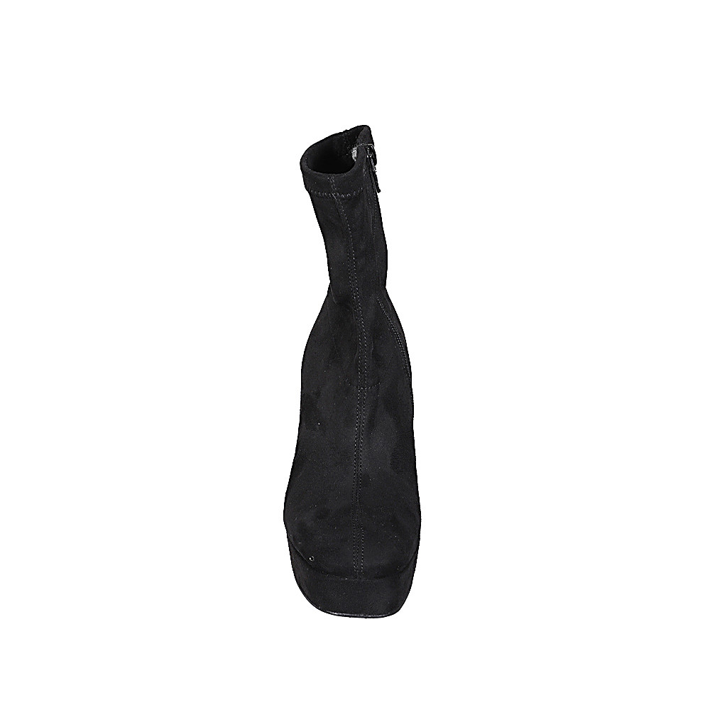 Bottines pour femmes avec fermeture éclair et plateforme en daim et matériau élastique noir talon 10