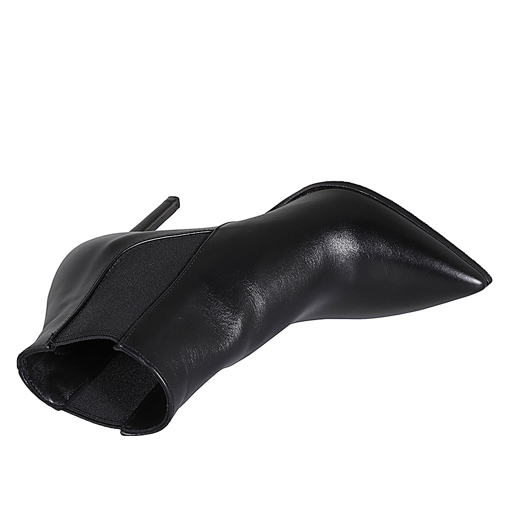 Bottines à bout pointu pour femmes avec elastiques en cuir noir avec talon 10
