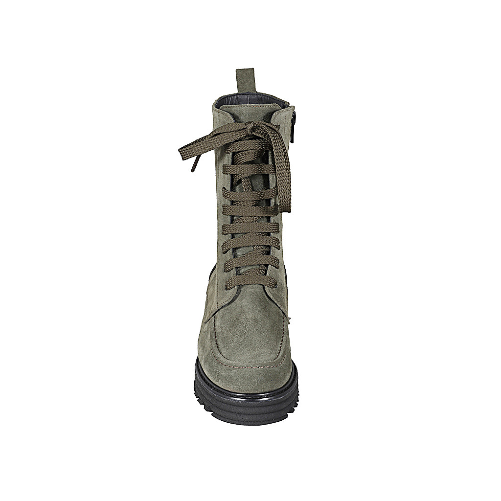 Bottines pour femmes avec lacets et fermeture éclair en daim vert talon 4 - Pointures disponibles:  32, 44