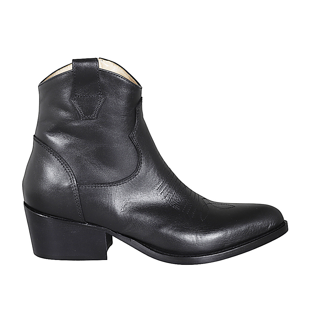 Bottine Texan pour femmes avec fermeture éclair et broderie en cuir noir talon 5 - Pointures disponibles:  35, 46