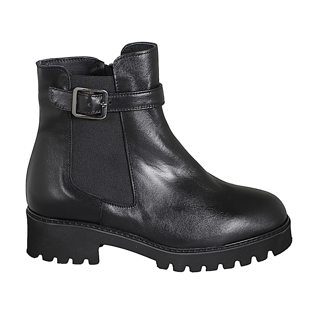 Bottines pour femmes avec semelle amovible, boucle, elastique et fermeture éclair en cuir noir talon 4 - Pointures disponibles:  31, 32, 33, 34, 35, 42, 43, 44, 45, 46