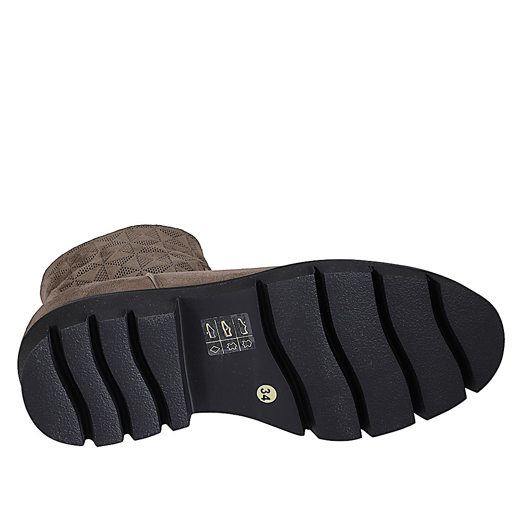 Bottines pour femmes en daim taupe avec fermeture éclair et motif géométrique talon 4 - Pointures disponibles:  32, 33, 34, 35, 42, 43, 44, 45, 46