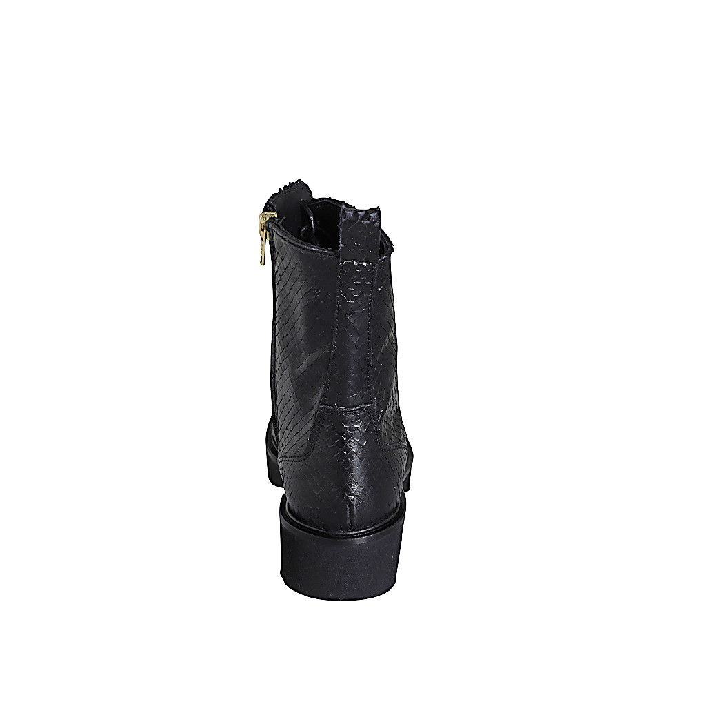 Bottines pour femmes avec lacets, bout droit et fermeture éclair en cuir imprimé noir talon 4 - Pointures disponibles:  32, 33, 34, 35, 42, 43, 44, 45, 46, 47