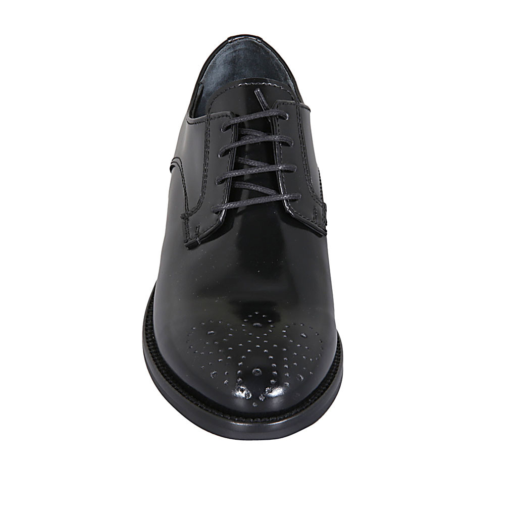Ballerine avec accessoire pour femmes en cuir marron talon compensé 4