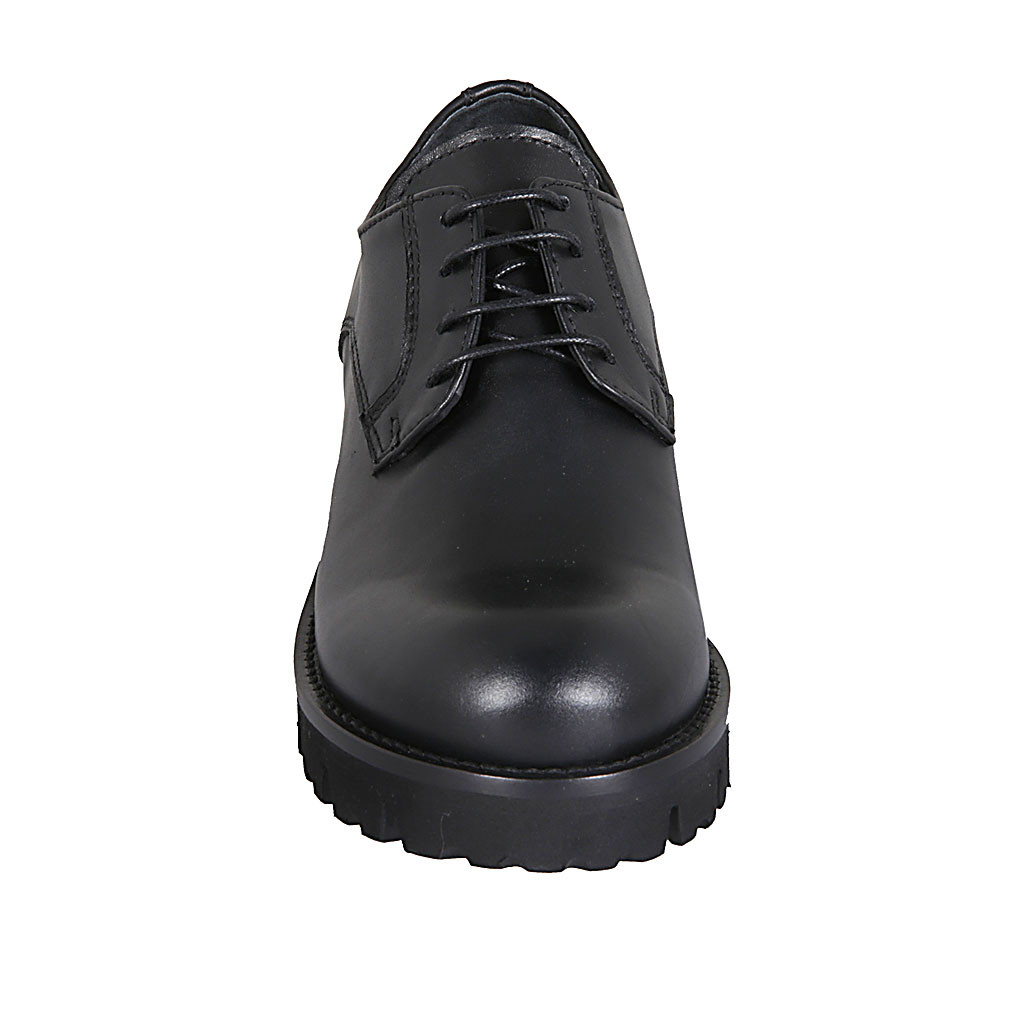 Chaussure à lacets derby pour femmes en cuir noir talon 3 - Pointures disponibles:  32, 44