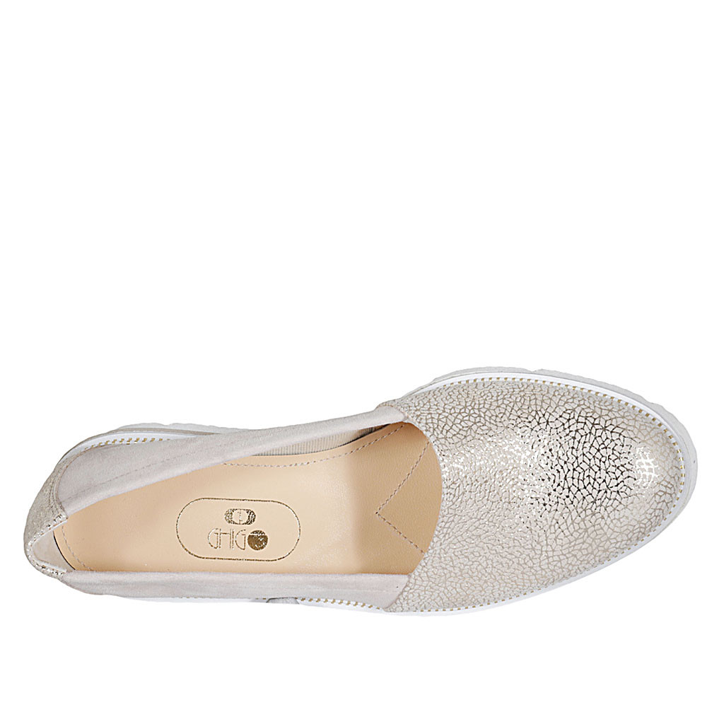 Ballerine pour femmes avec noeud en cuir lamé imprimé bleu clair talon 1