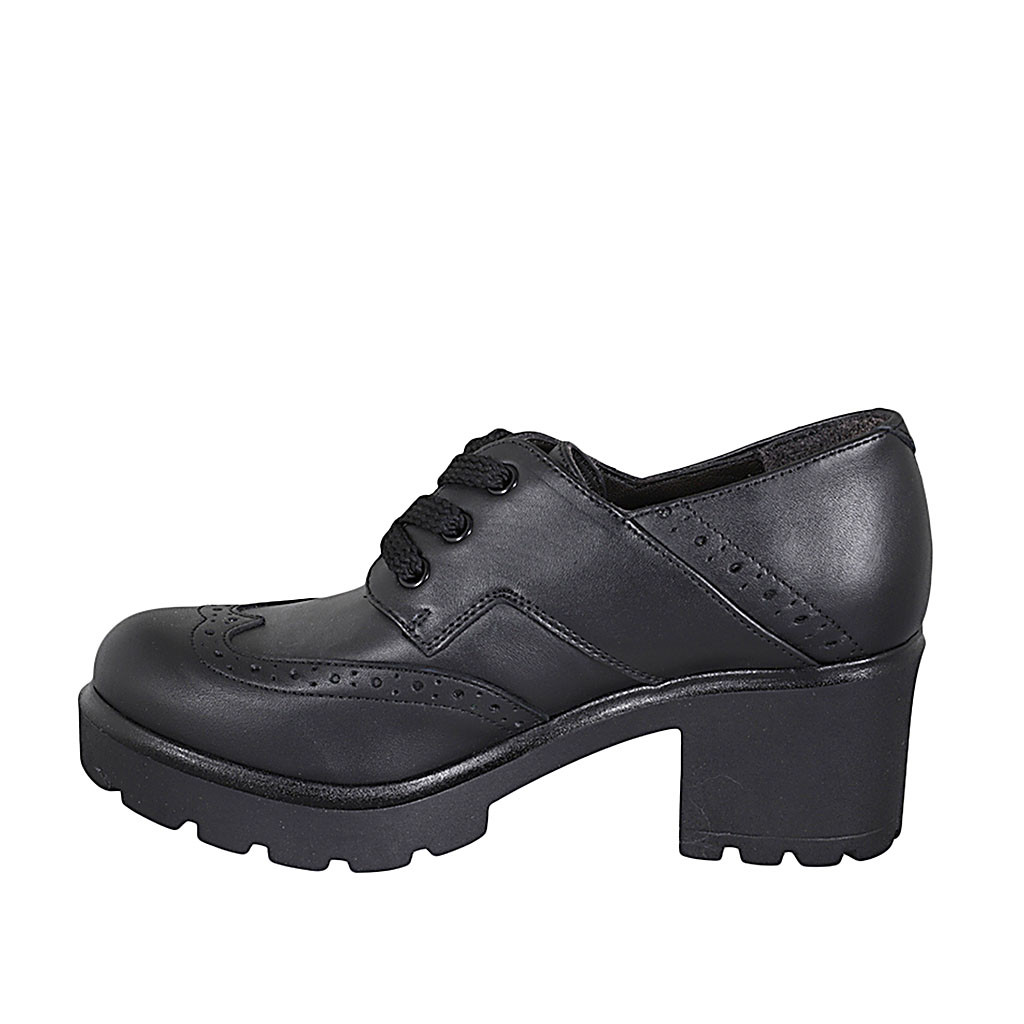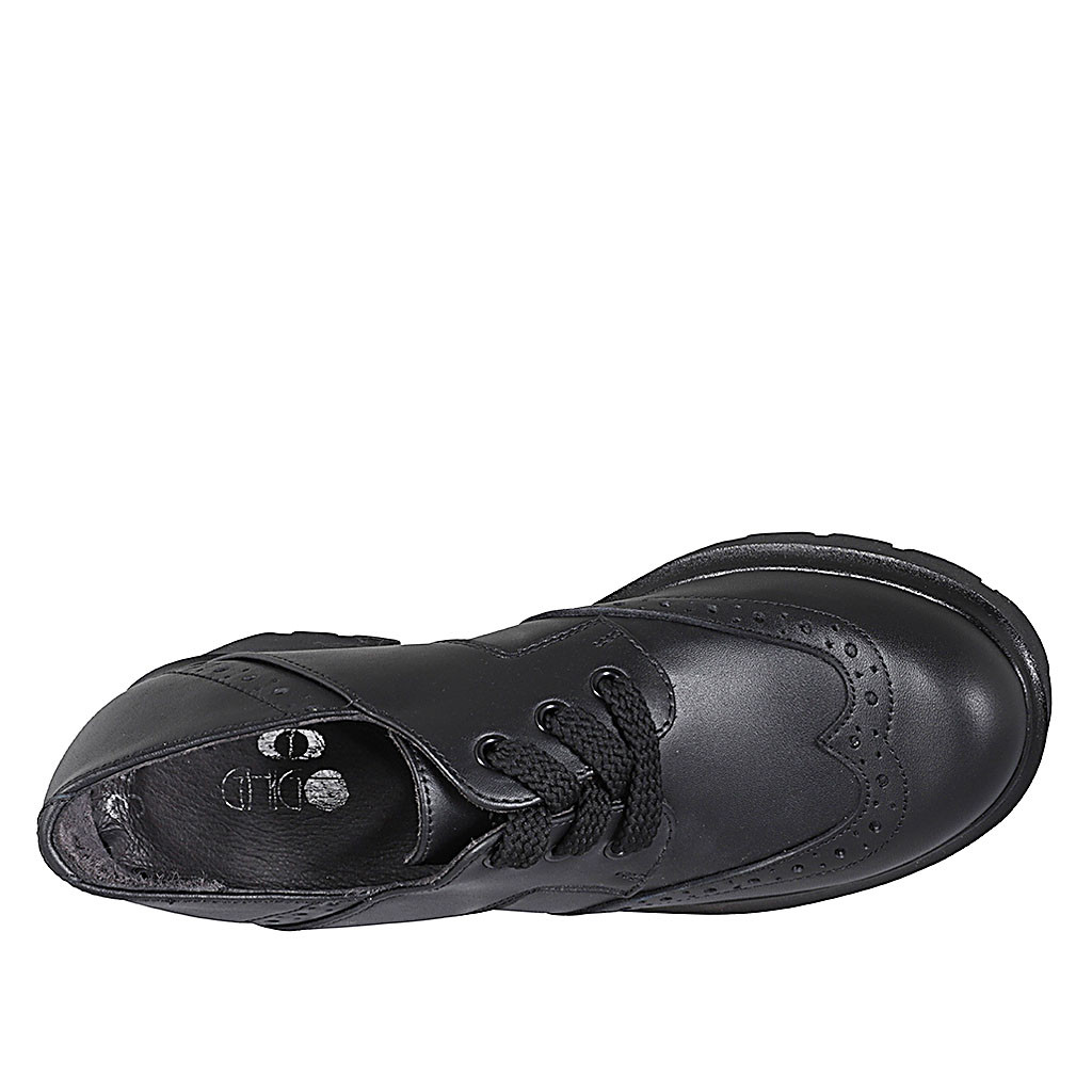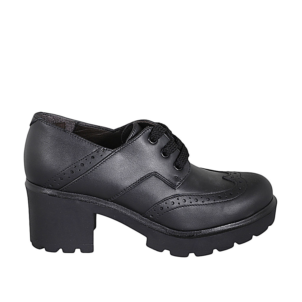 Chaussure derby à lacets avec bout golf pour femmes en cuir noir talon 6 - Pointures disponibles:  32