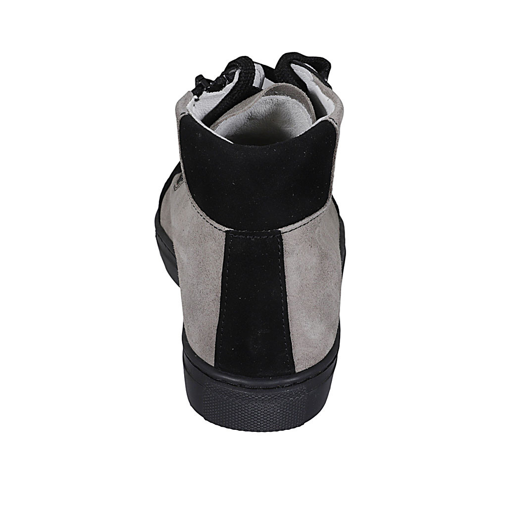 Ballerine pour femmes avec courroie en daim noir perforé y cuir lamé argent talon 1