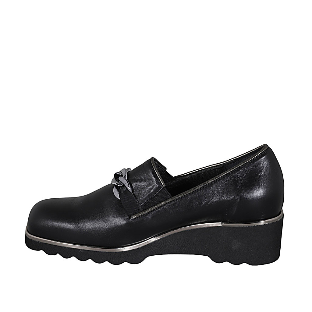 Chaussure à bout pointu pour femmes en cuir verni noir talon 2