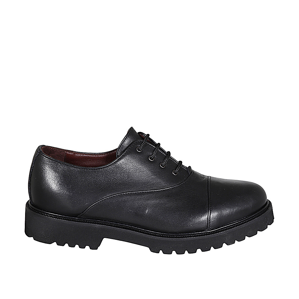 Chaussure richelieu à lacets pour femmes en cuir noir avec bout droit talon 3