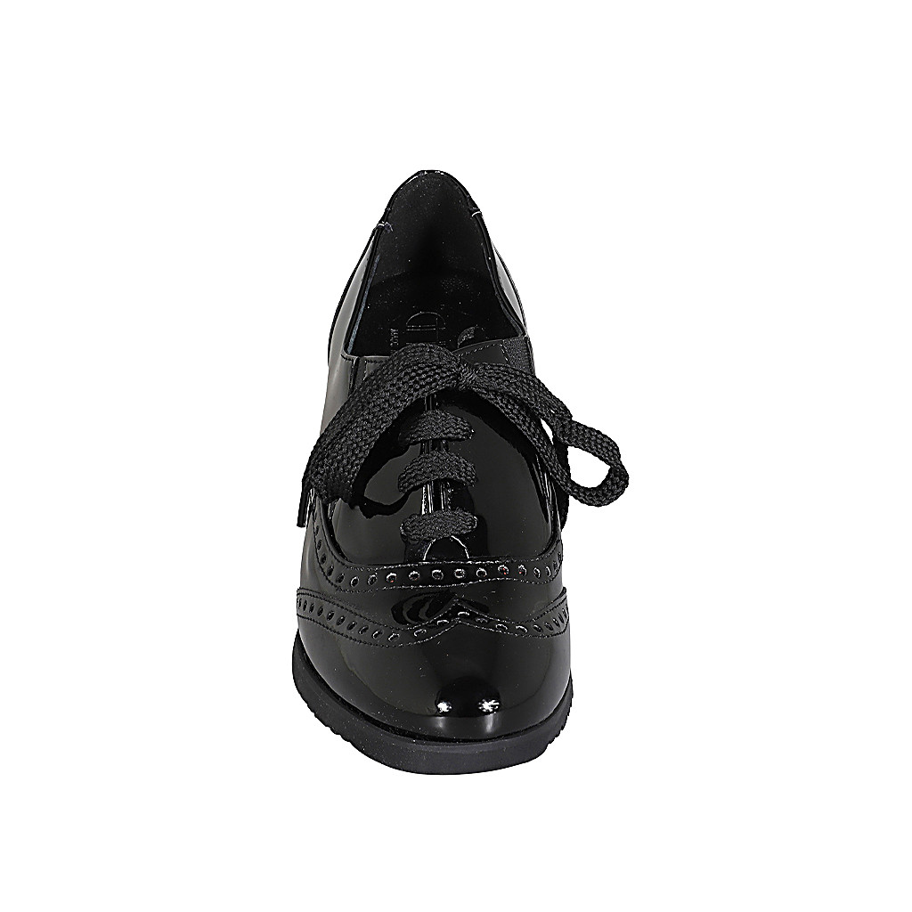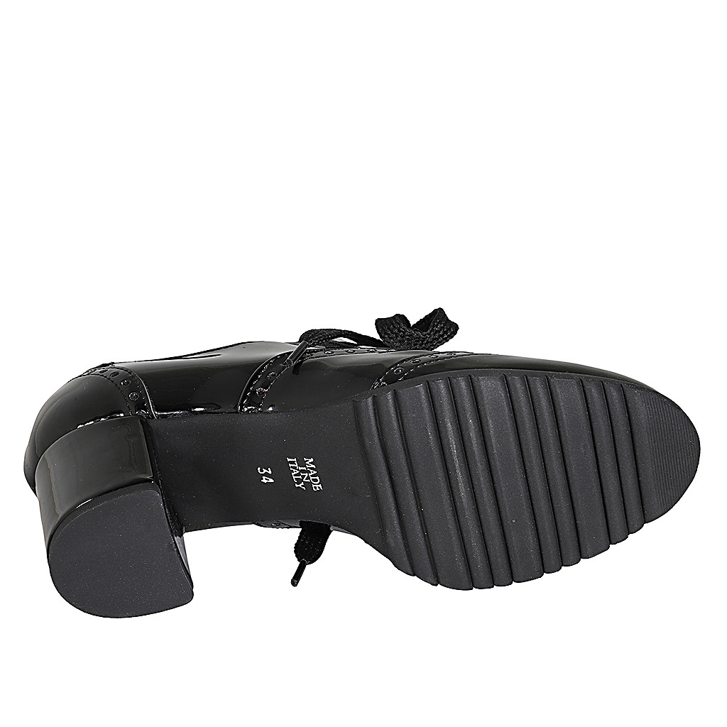 Chaussure richelieu avec lacets, semelle amovible et bout golf pour femmes en cuir verni noir talon 6