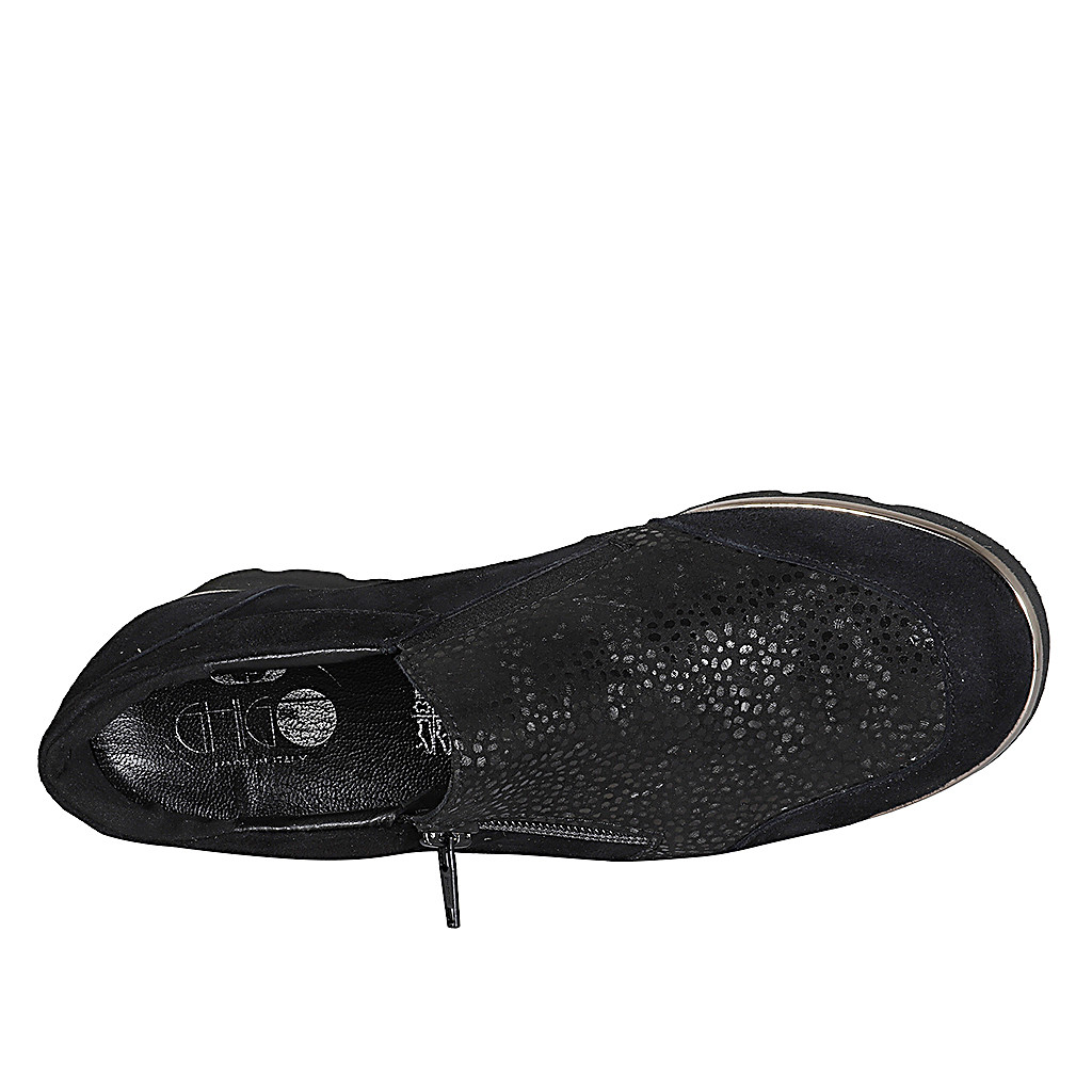 Chaussure avec fermetures èclair et semelle amovible pour femmes en daim et daim imprimé lamé noir talon compensé 3 - Pointures disponibles:  32