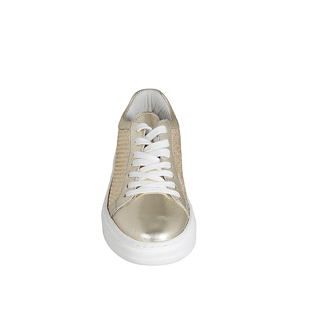 Sandale pour femmes avec plateforme en cuir et cuir verni beige talon 10