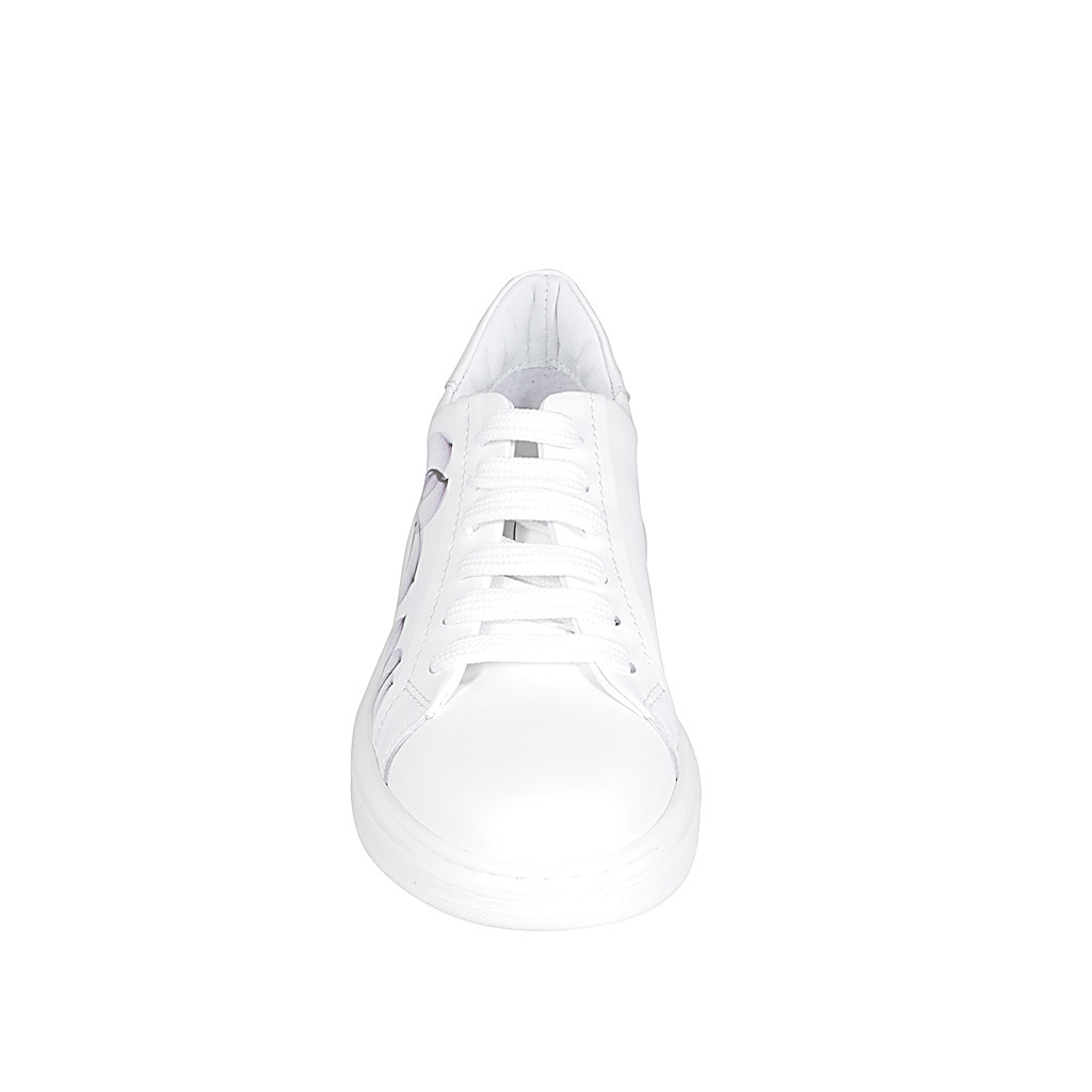 Chaussure pour femmes à lacets avec semelle amovible en cuir blanc et imprimé floreal violette talon compensé 3