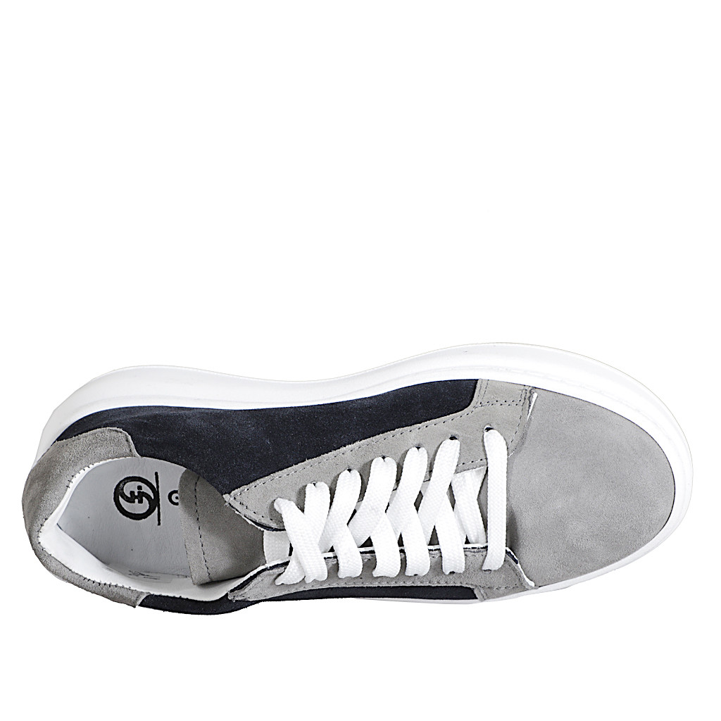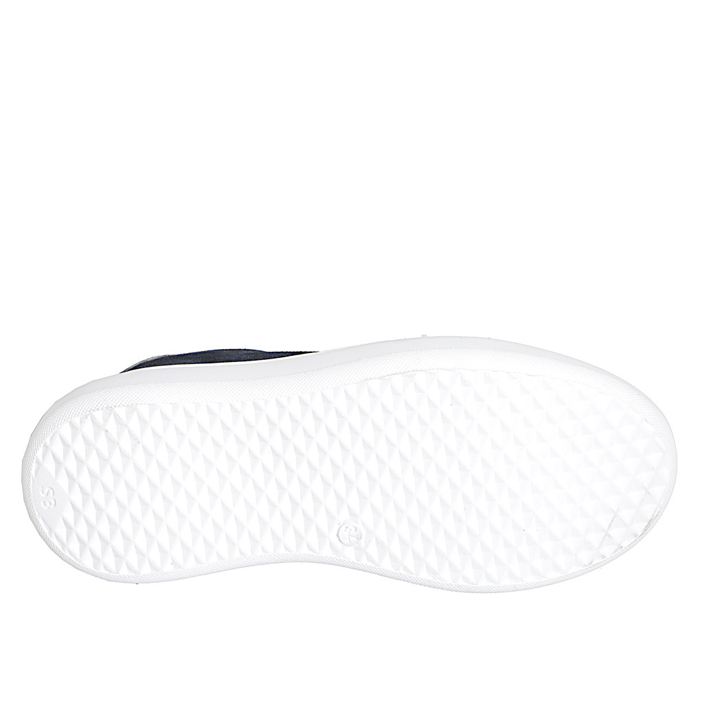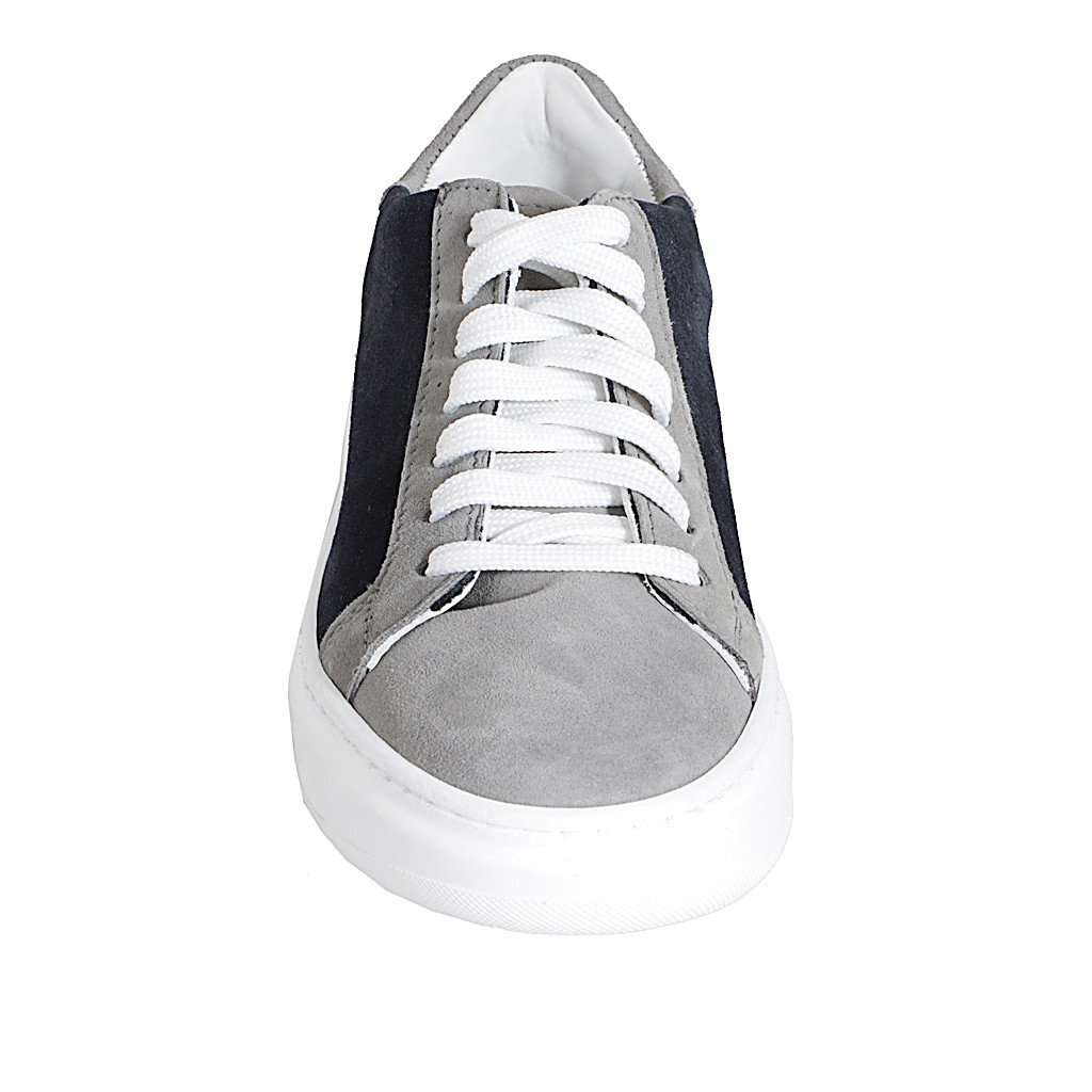 Chaussure ouverte pour femmes avec courroie en cuir bleu foncé et cuir imprimé bleu clair talon 7