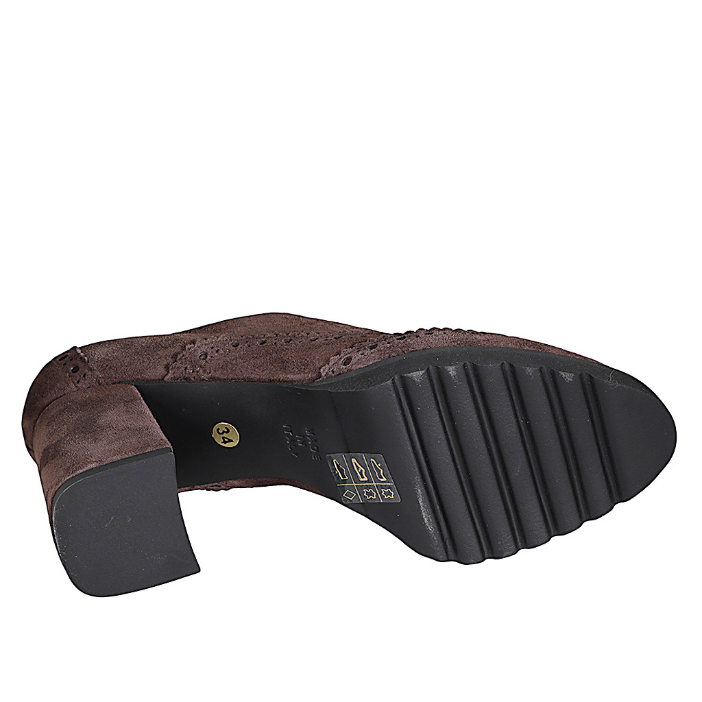 Chaussure richelieu à lacets avec bout golf pour femmes en daim marron talon 7