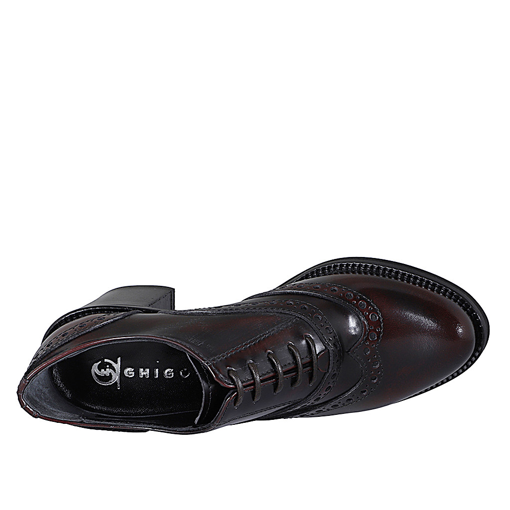 Chaussure Oxford pour femmes à lacets een cuir brossé bordeaux avec bout golf talon 6 - Pointures disponibles:  32, 33, 35, 42, 43, 44, 45