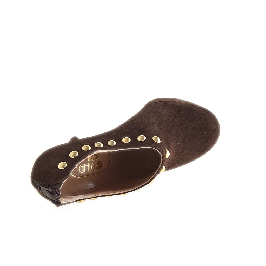 Chaussure à plateforme avec goujons et fermeture éclair en daim marron talon 15 - Pointures disponibles:  42