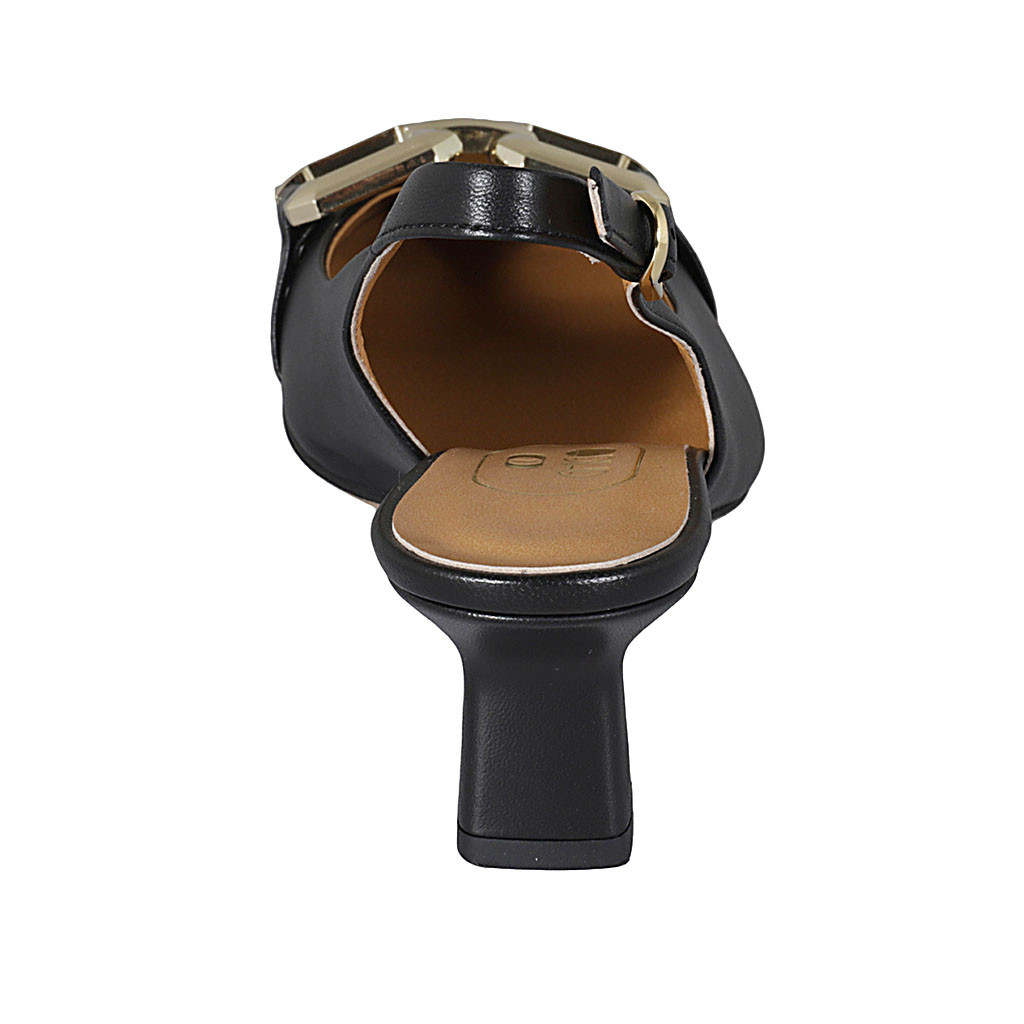 Chaussure ouverte pour femmes avec plateforme et courroie à la cheville en cuir noir talon 11