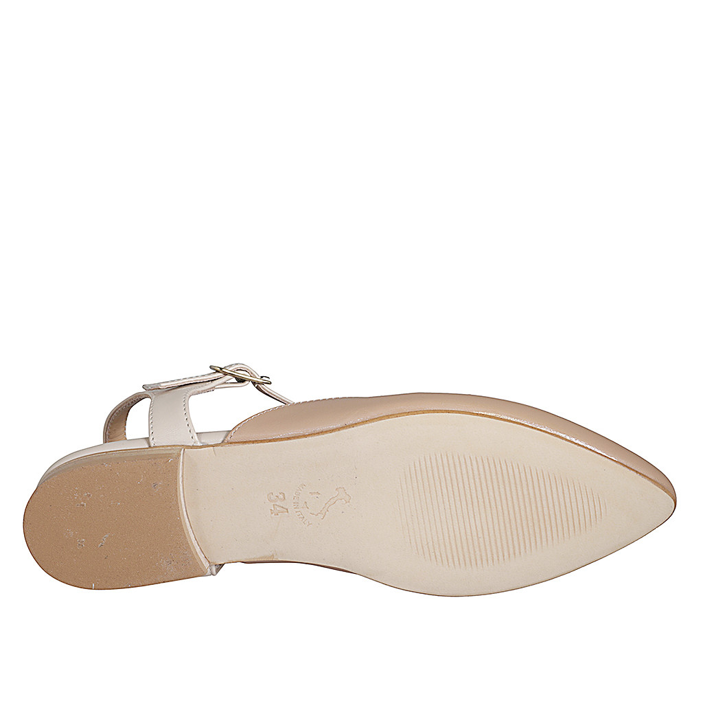Chaussure ouverte avec fermeture éclair en cuir cognac et cuivre avec strass talon 2