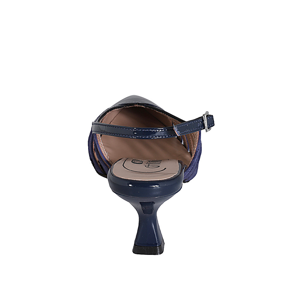 Slingback à bout pointu pour femmes en cuir verni et daim bleu talon 5 - Pointures disponibles:  35, 46