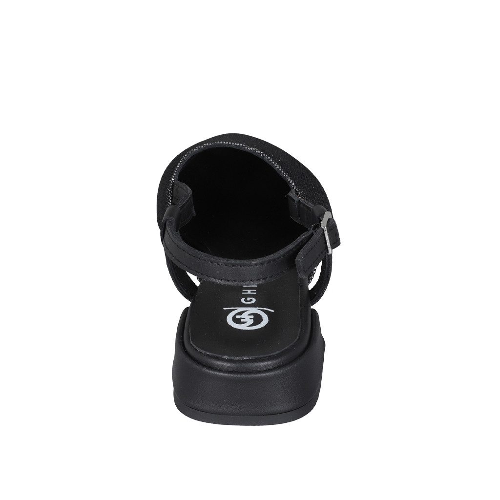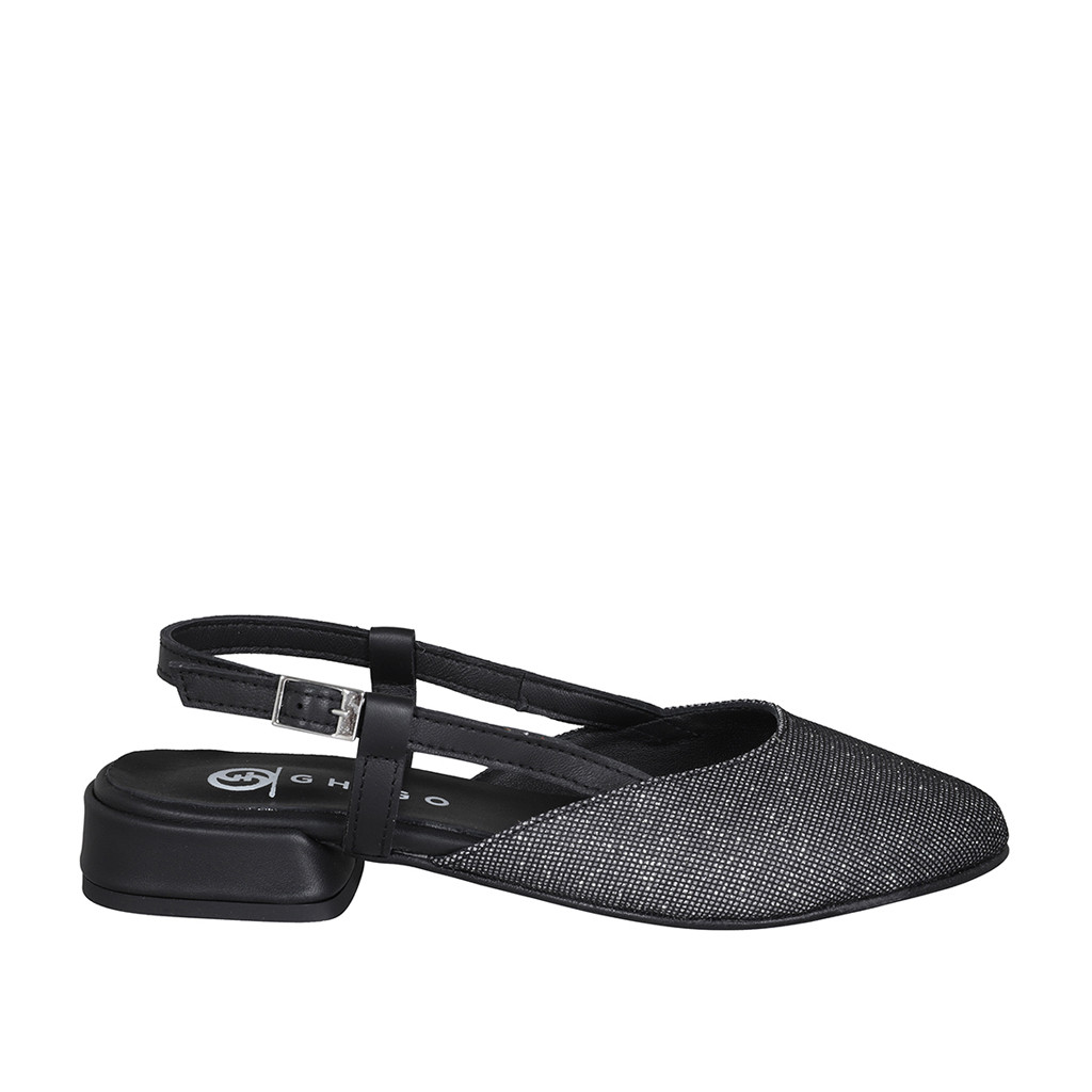 Slingback pour femmes en tissu lamé scintillant argent et cuir noir talon 2