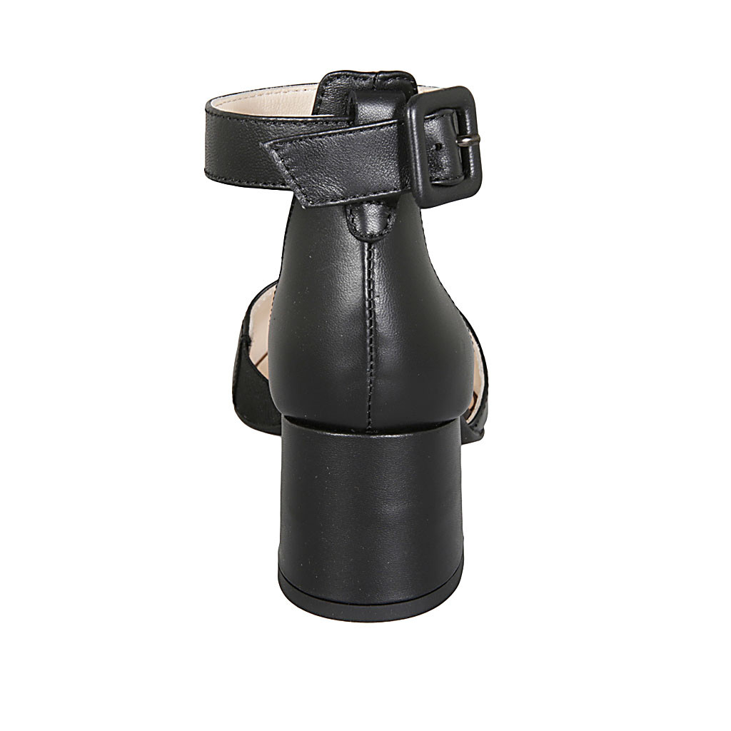 Sandale pour femmes avec accessoire en cuir cognac et cuir verni imprimé lamé cuivre talon 5
