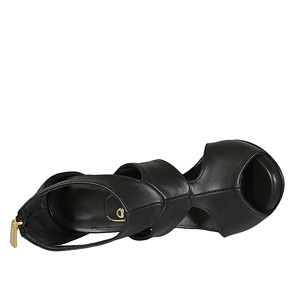 Chaussure ouverte pour femmes avec fermeture eclair et plateau en cuir noir talon 10 - Pointures disponibles:  42