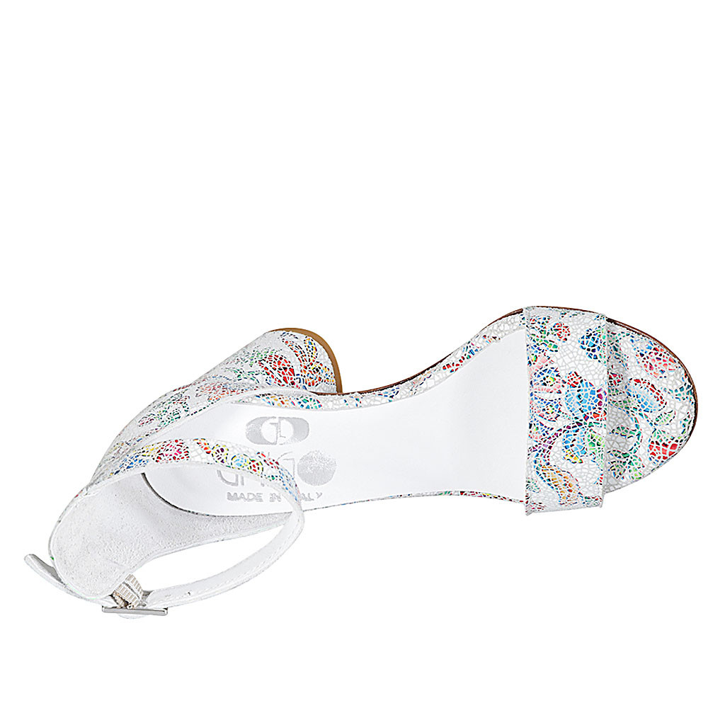 Chaussure ouverte pour femmes avec courroie en cuir blanc imprimé multicouleur talon 7 - Pointures disponibles:  32