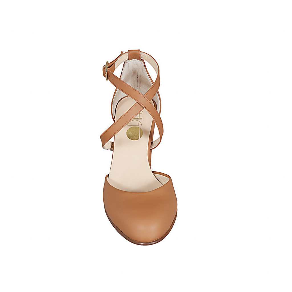 Chaussure ouverte pour femmes avec courroie croisée en cuir cognac talon 8 - Pointures disponibles:  43