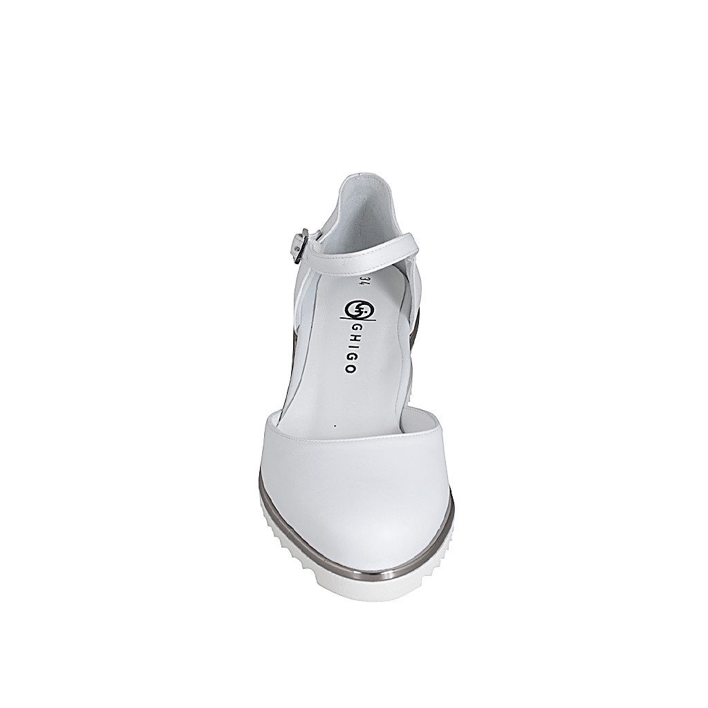 Mule pour femmes en cuir blanc avec strass talon 3