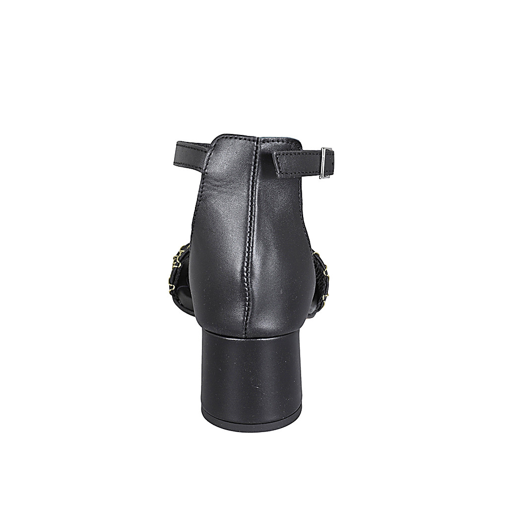 Mule pour femmes avec bout droit en cuir noir, daim tacheté et noeud talon 7