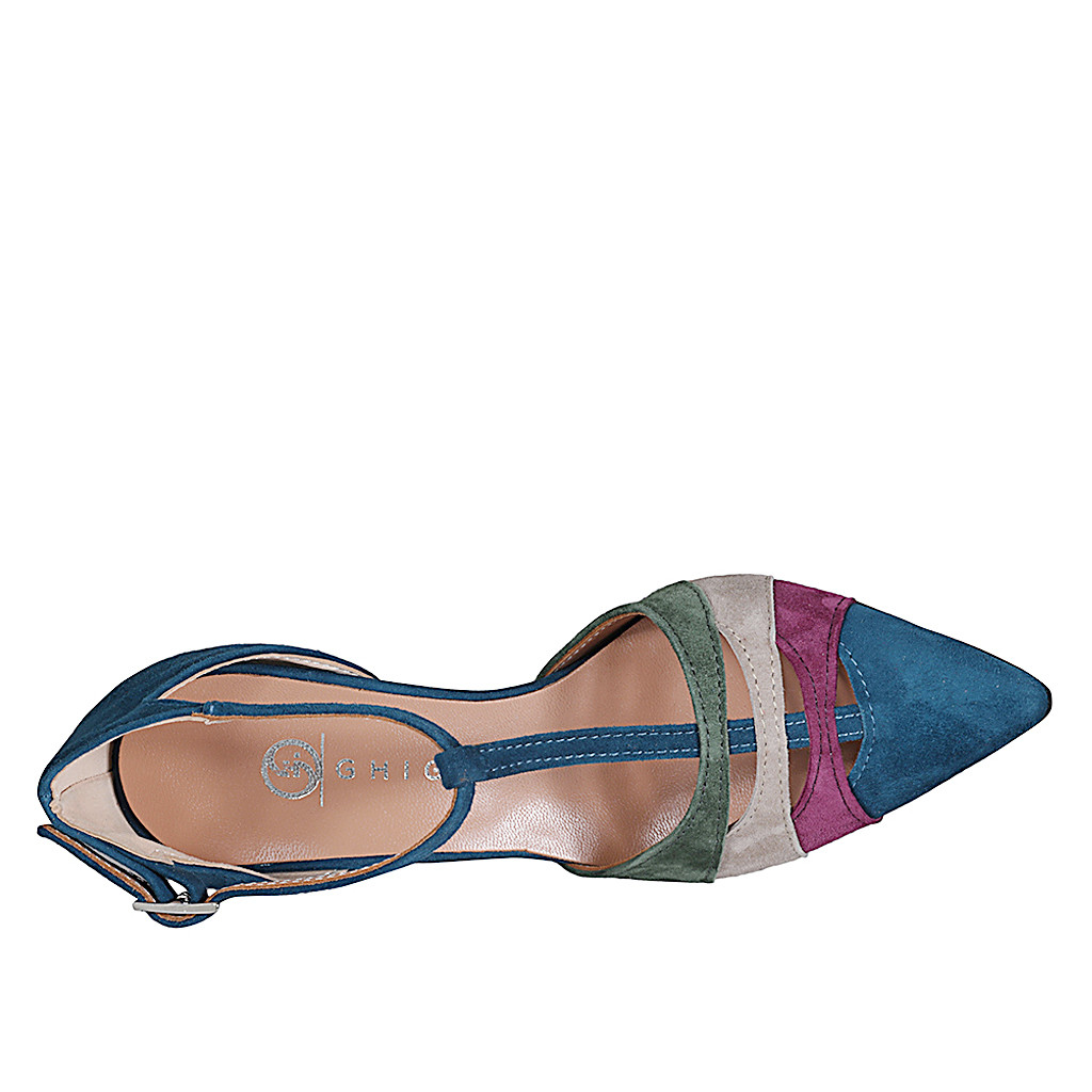 Escarpin Mary Jane avec courroie et bout golf pour femmes en daim taupe et cuir noir talon 4