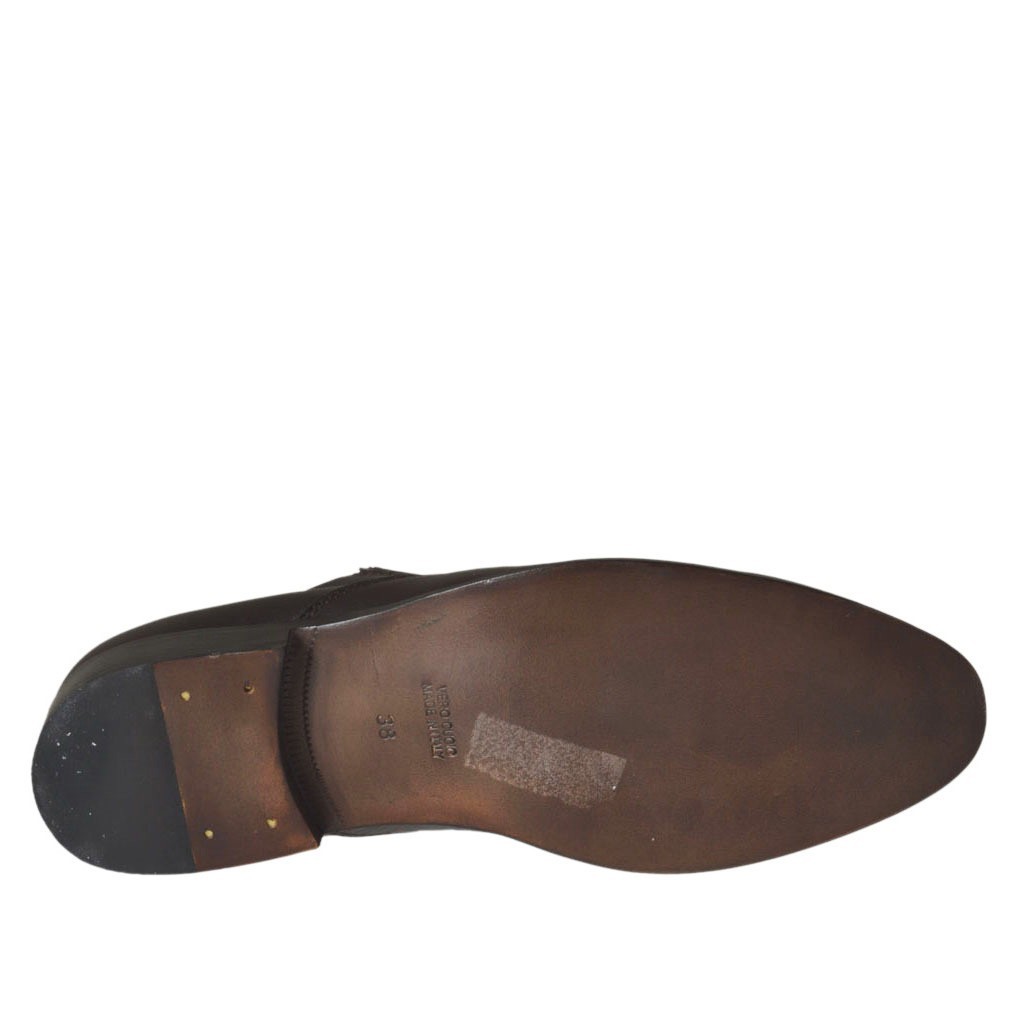 Chaussure derby elégant avec elastiques et lacets pour hommes en cuir doux marron