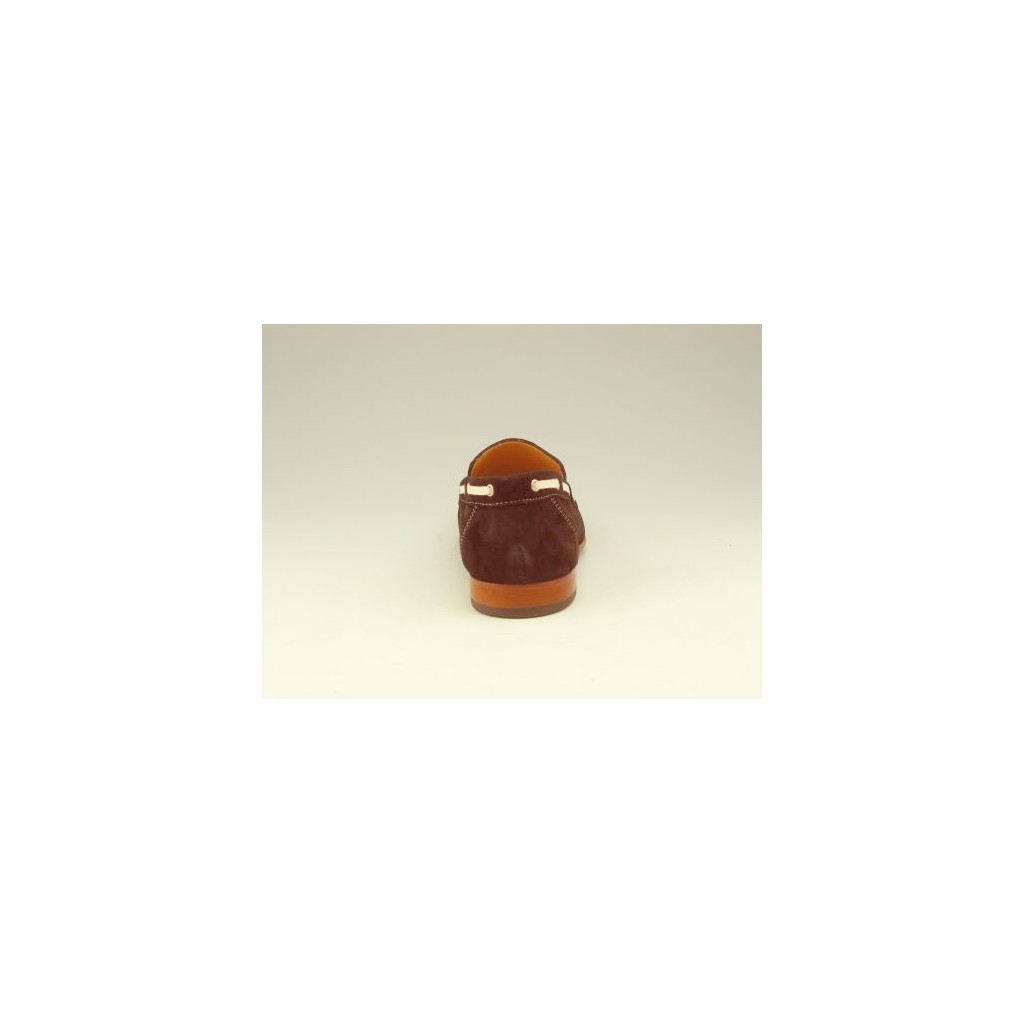 Mocassin à bout carré avec accessoire pour femmes en cuir marron talon 4