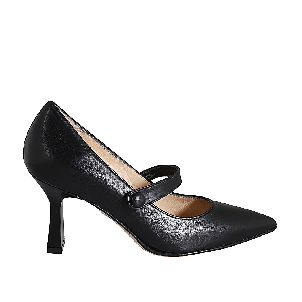 Mary Jane pour femmes à bout pointu avec courroie en cuir noir talon 8