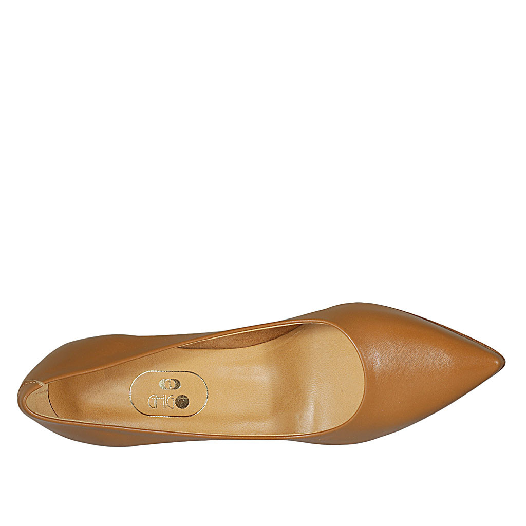 Escarpin à bout pointu pour femmes en cuir cognac avec talon 8 - Pointures disponibles:  31, 42