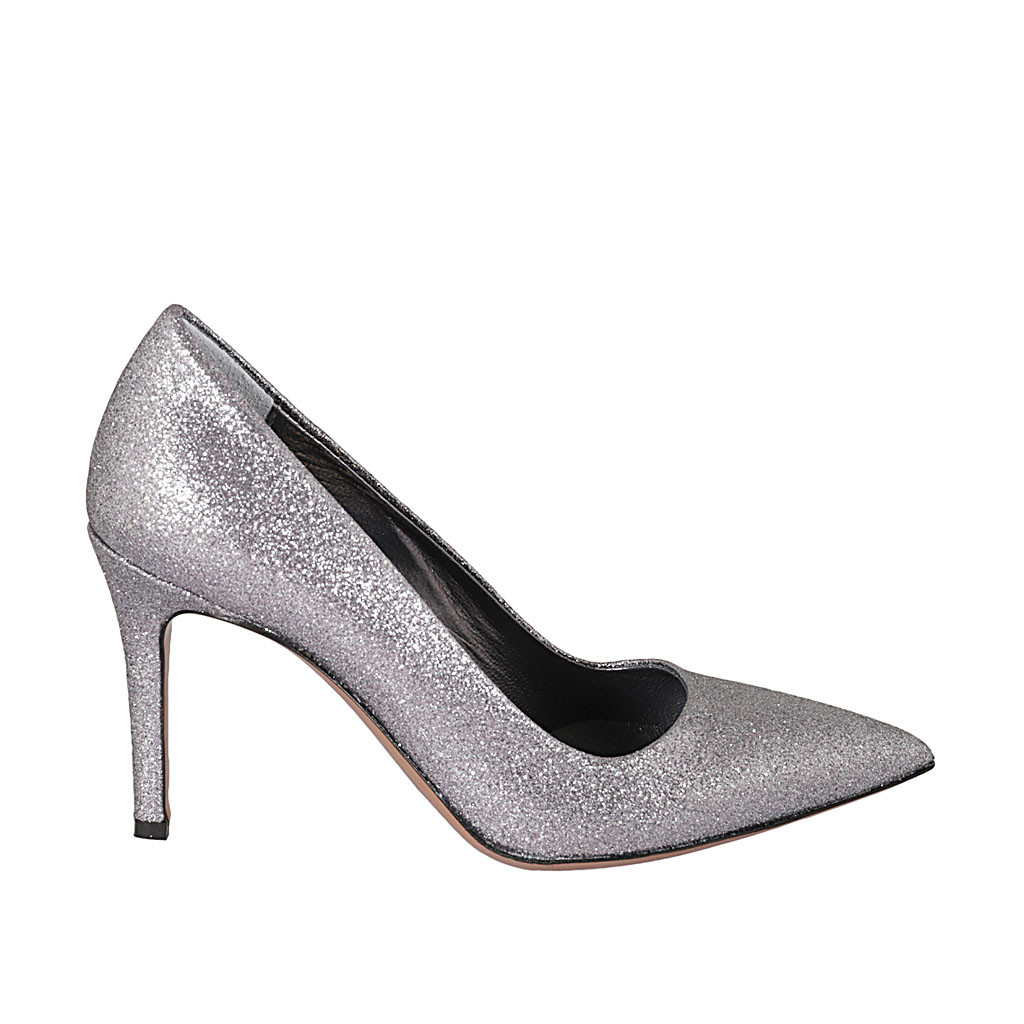 Chaussure ouverte pour femmes en tissu bleu jeans et cuir cognac avec courroie croisé talon 10