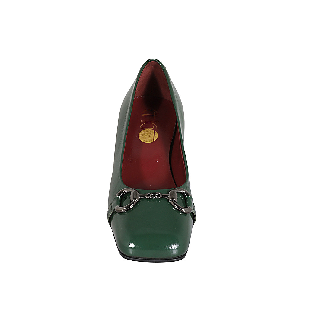 Escarpin pour femmes avec accessoire en cuir verni vert talon 5 - Pointures disponibles:  42