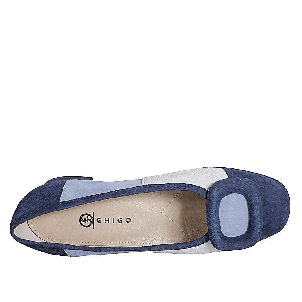 Escarpin pour femmes avec accessoire en daim bleu, bleu clair et gris talon 3 - Pointures disponibles:  32, 43, 45