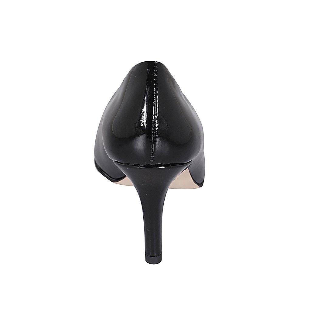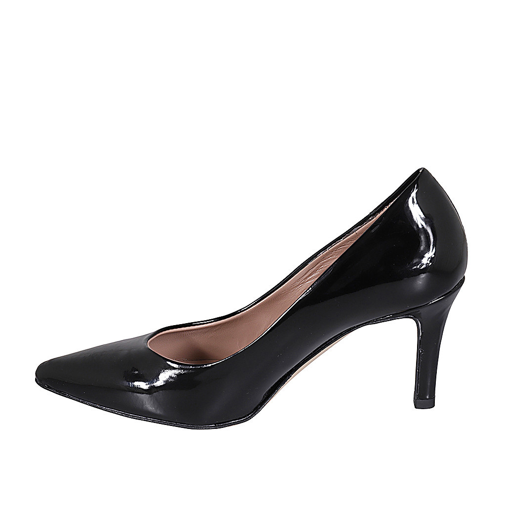 Escarpin à bout pointu pour femmes en cuir verni noir talon 7