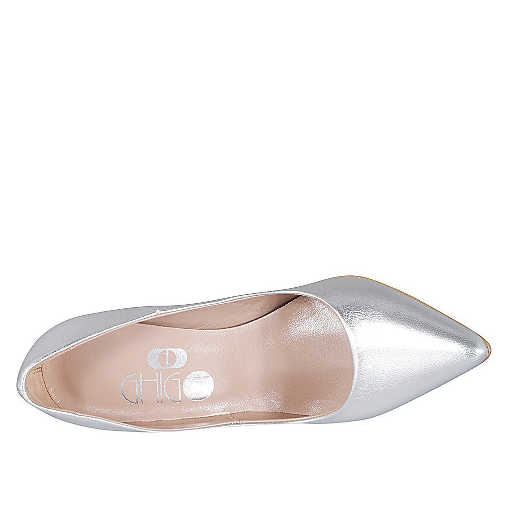 Escarpin à bout pointu pour femmes en cuir lamé argent talon 10