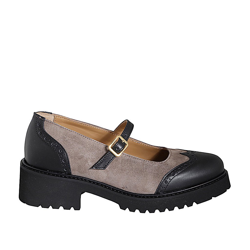 Mocassin pour femmes avec accessoire et strass en cuir et daim noir talon 4