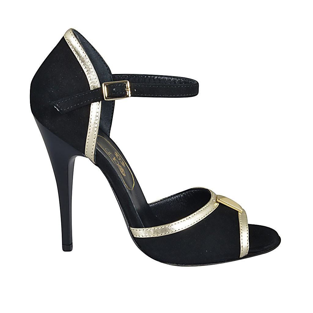 Chaussure ouverte pour femmes avec accessoire en daim noir et cuir platine talon 11 - Pointures disponibles:  42